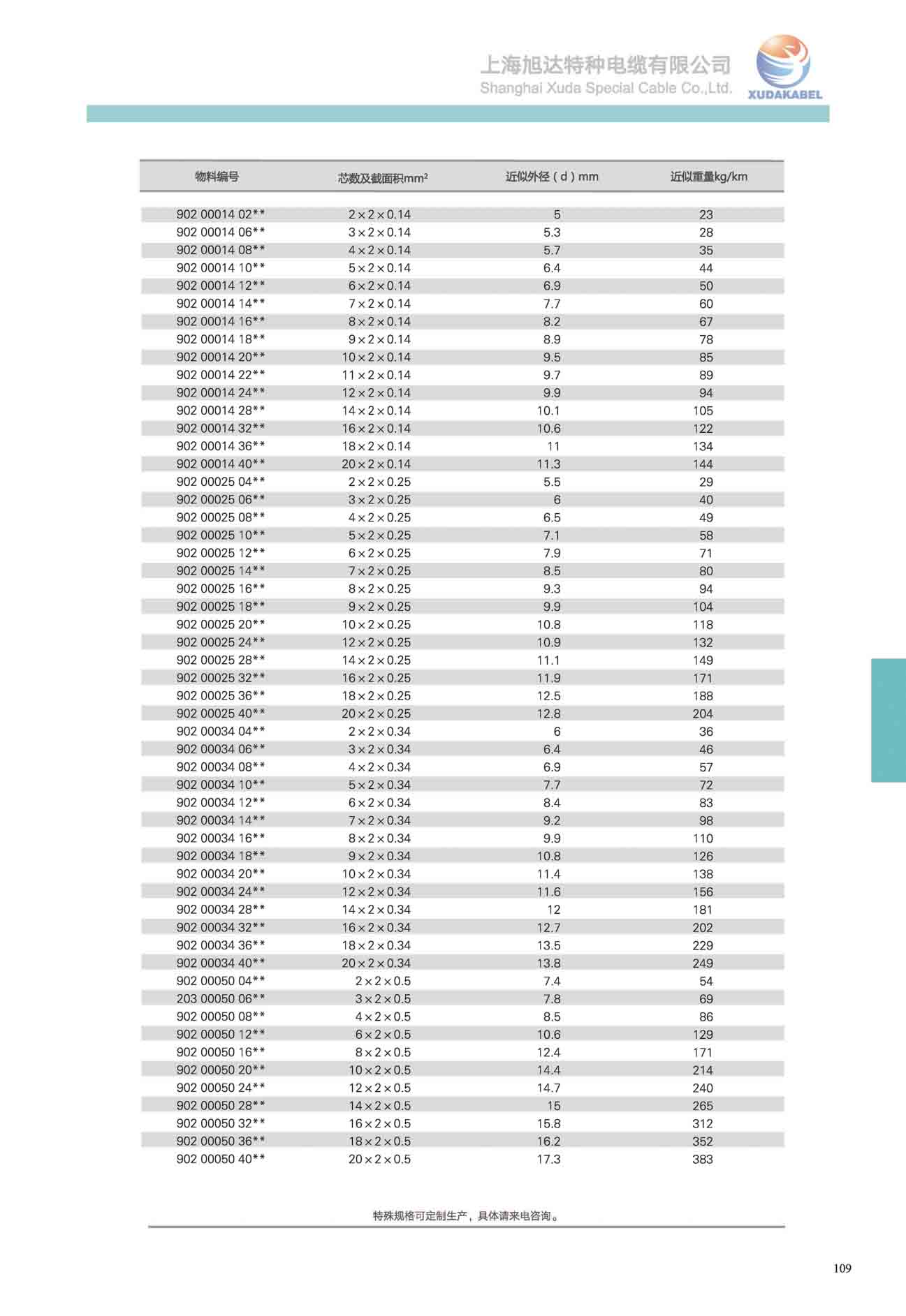 物料編號 芯線及截面積mm2 最大外徑(d)mm 電纜近似重量Kg/km