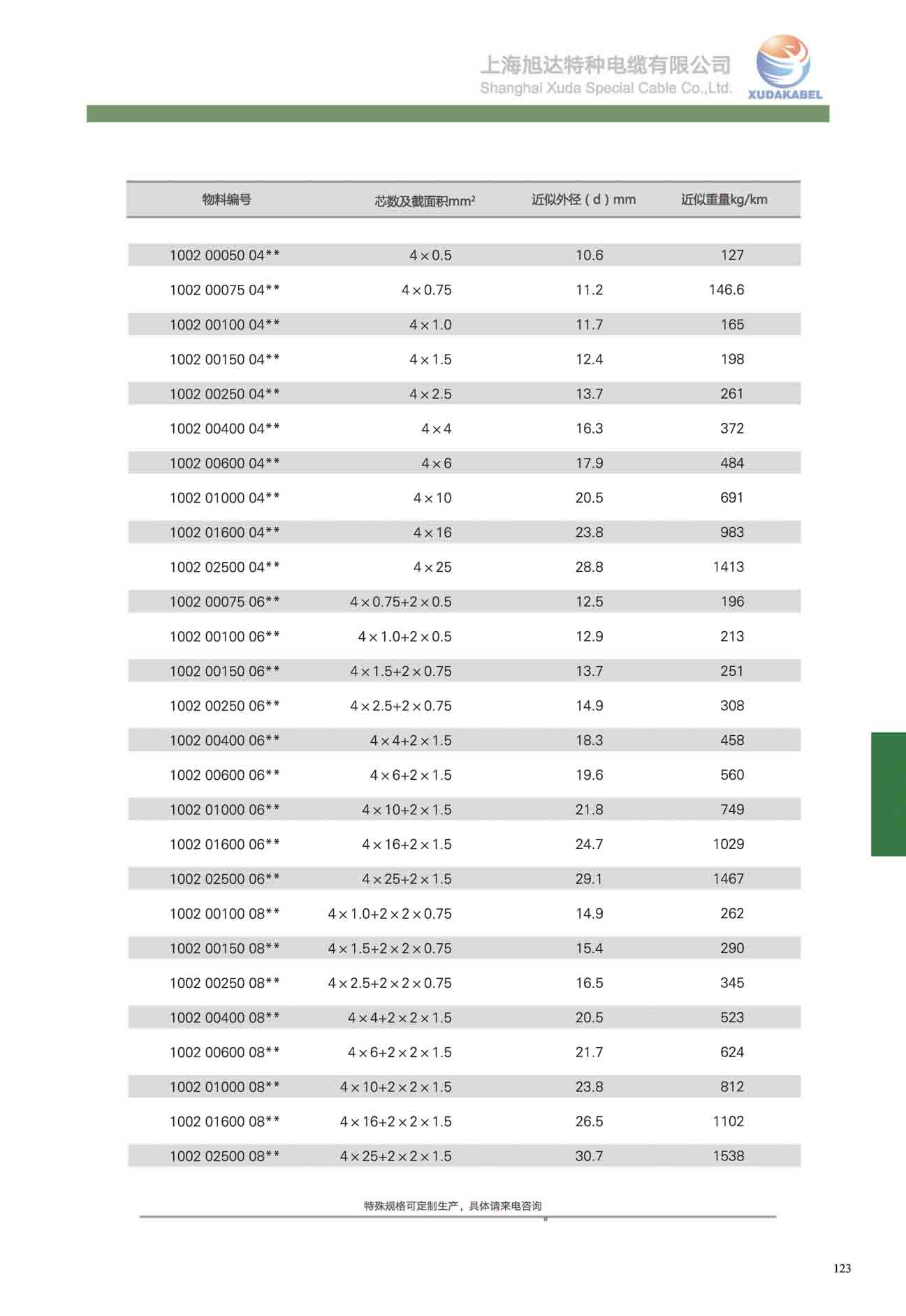 物料編號 芯線及截面積mm2 最大外徑(d)mm 電纜近似重量Kg/km