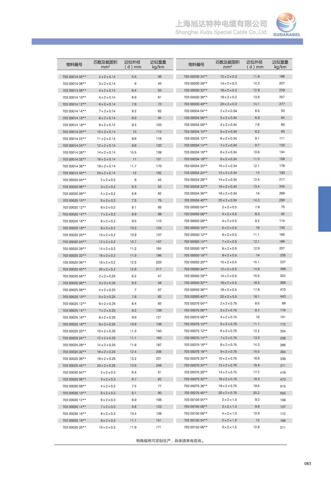 | 物料編號 | 芯線及截面積mm2 | 最大外徑(d)mm | 電纜近似重量Kg/km |