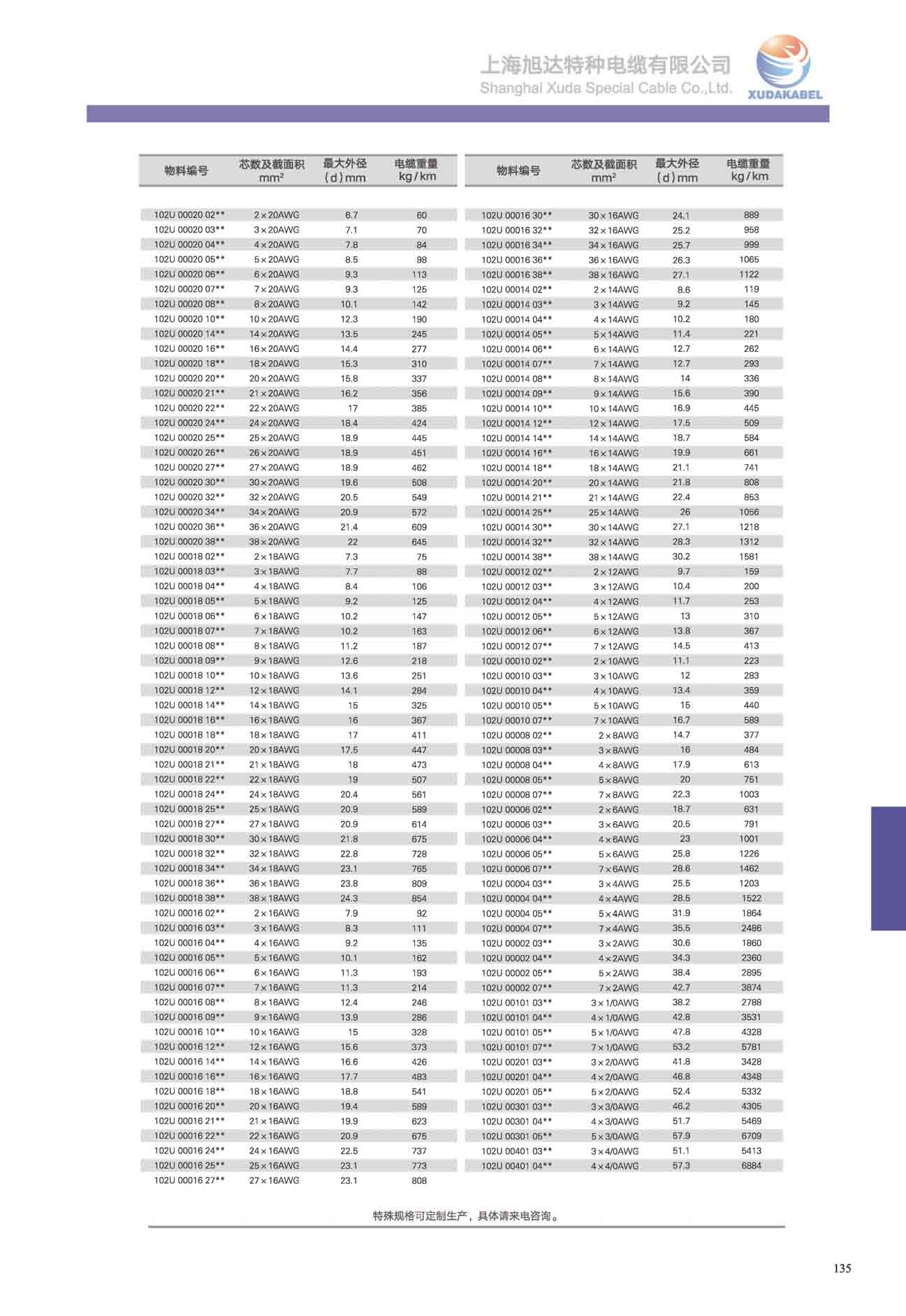| 電纜近似重量Kg/km |