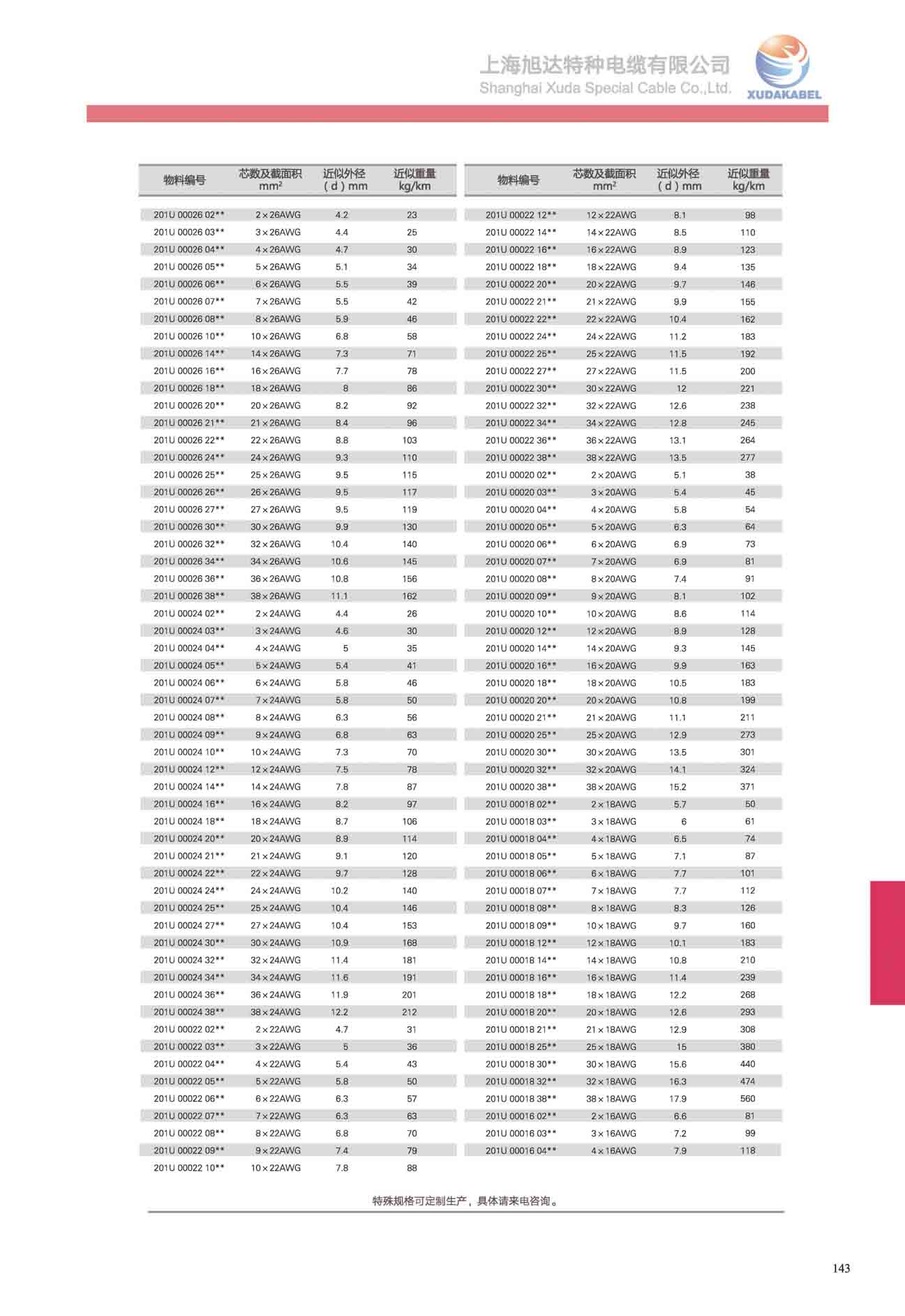 | 物料編號 | 芯線及截面積mm2 | 最大外徑(d)mm | 電纜近似重量Kg/km |