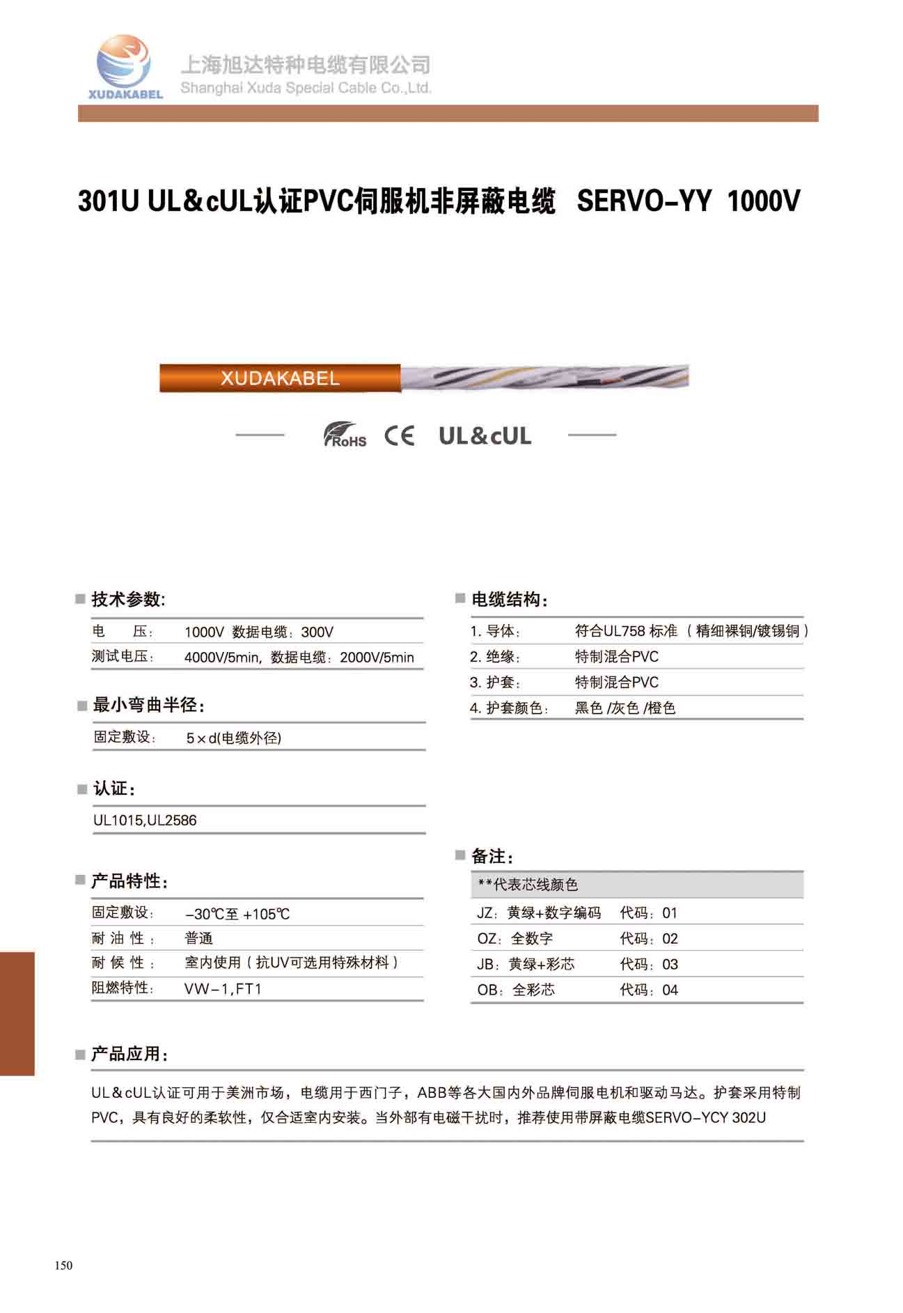 301U UL&cUL認(rèn)證PVC伺服機(jī)非屏蔽電纜 SERVO-YY 1000V