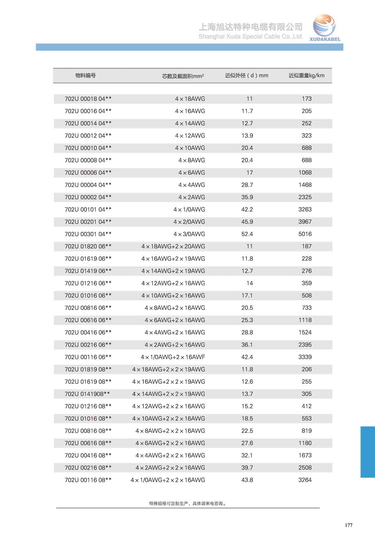| 物料編號 | 芯線及截面積mm2 | 最大外徑(d)mm | 電纜近似重量Kg/km |